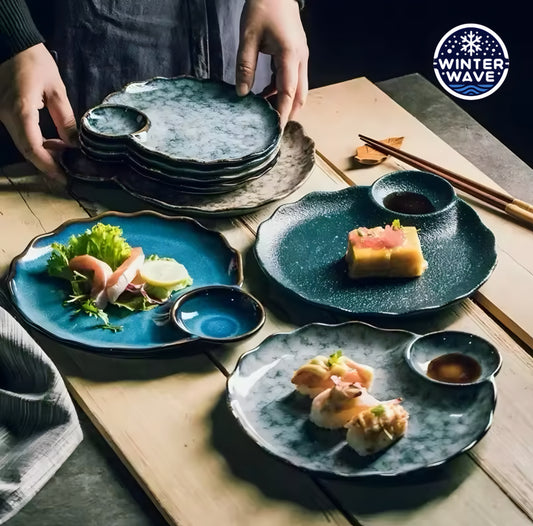 Handmade Polka Dot Ceramic Plates 12 PCS