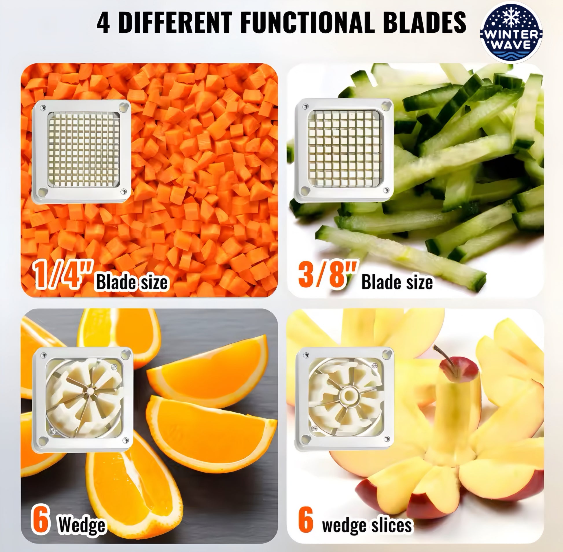 Introducing the French Fry Cutter - because who has time to cut them by hand? With 4 replaceable blades, you'll have perfect fries in no ... well, seconds.
