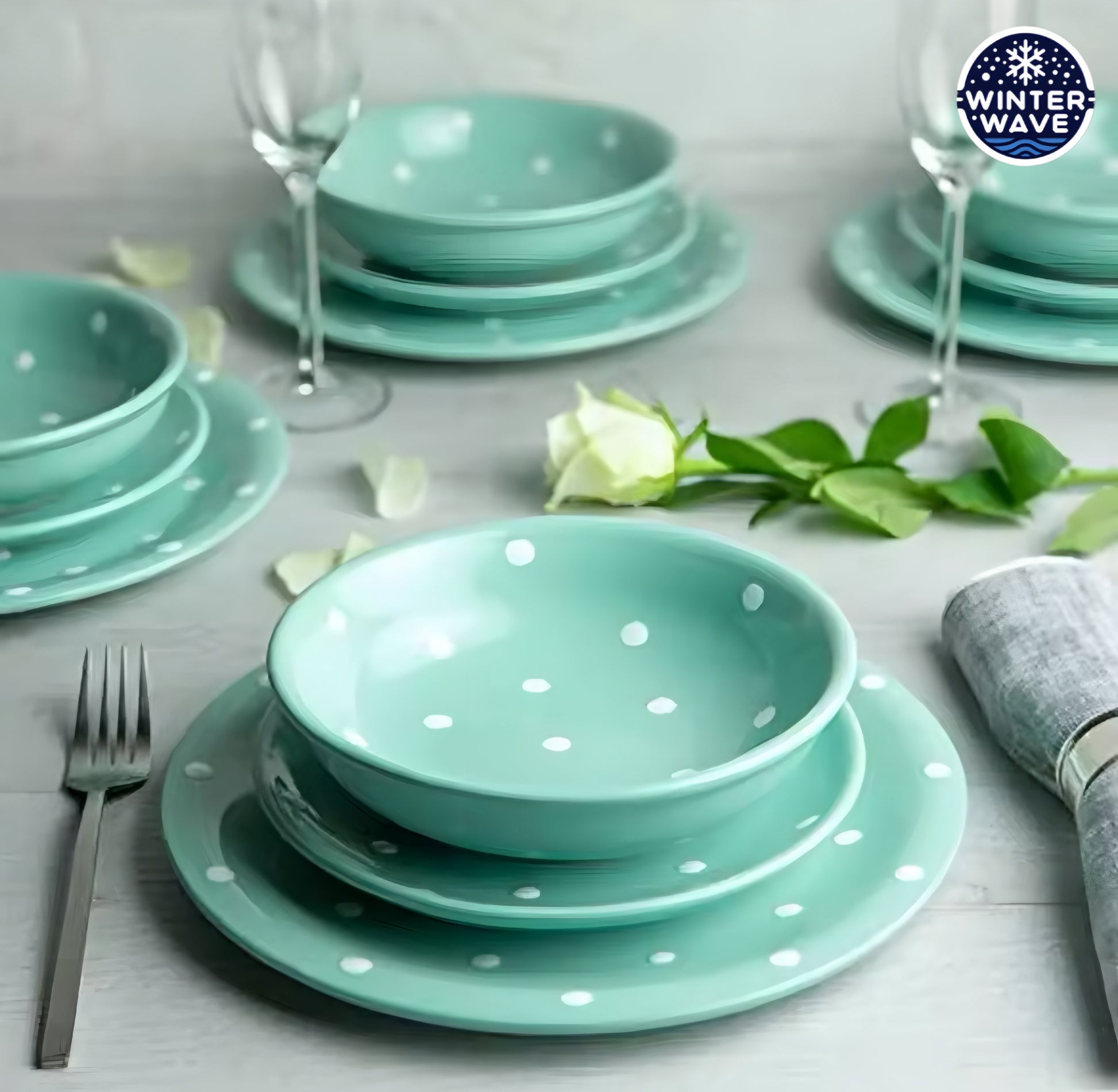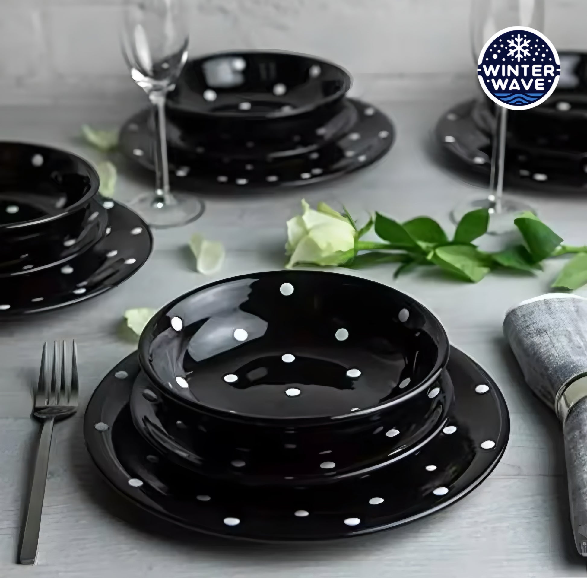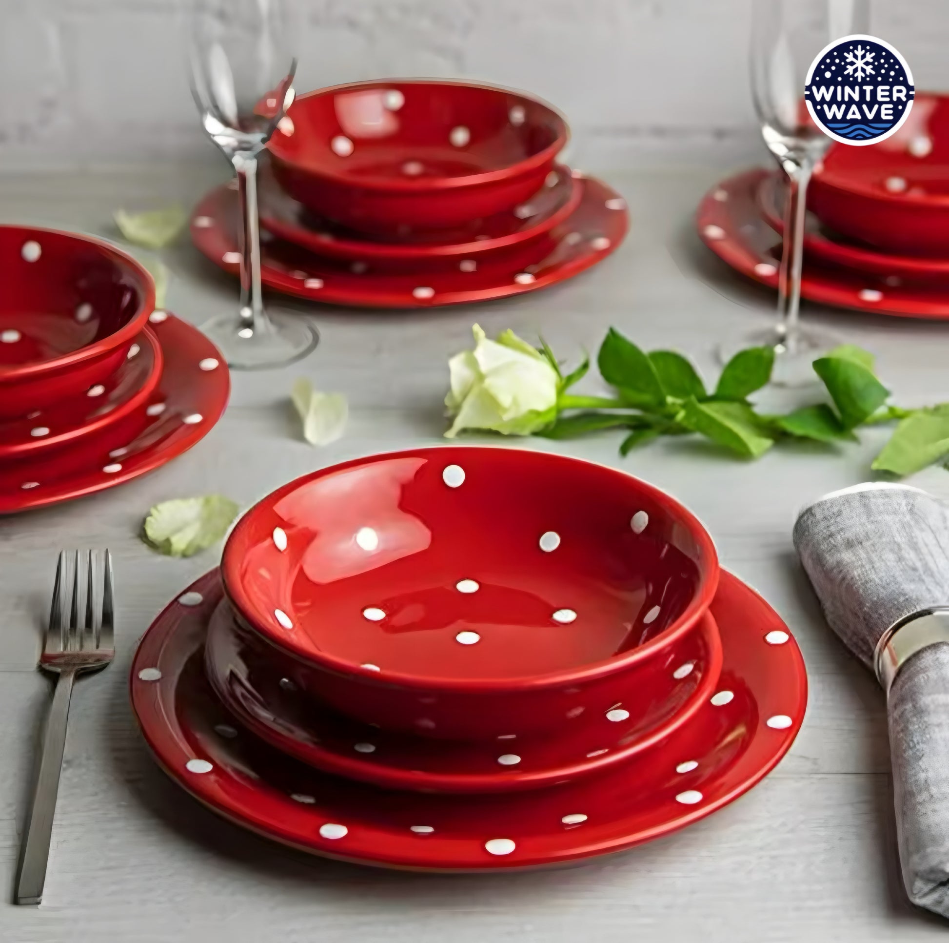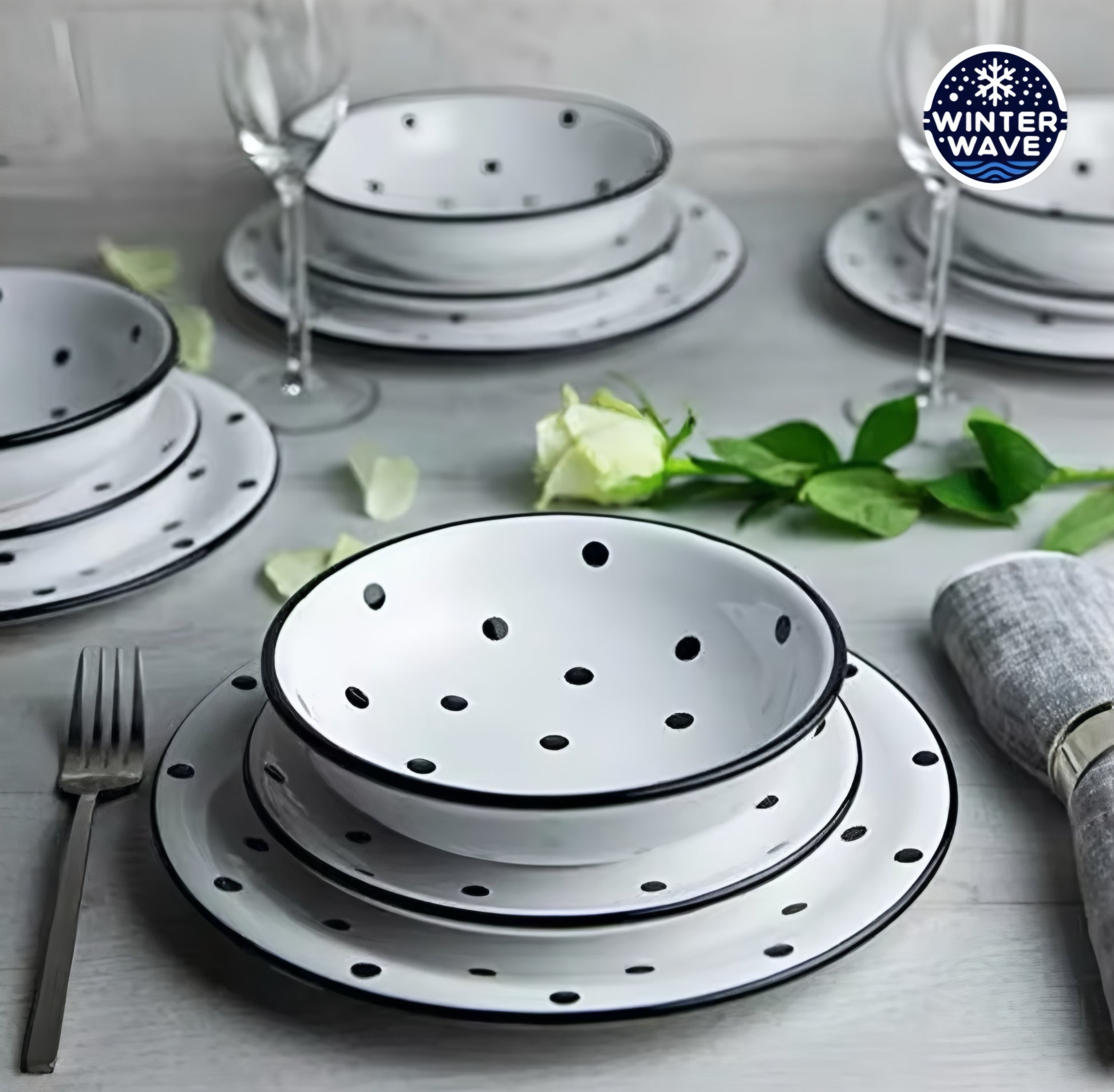 Handmade Polka Dot Ceramic Plates 12 PCS